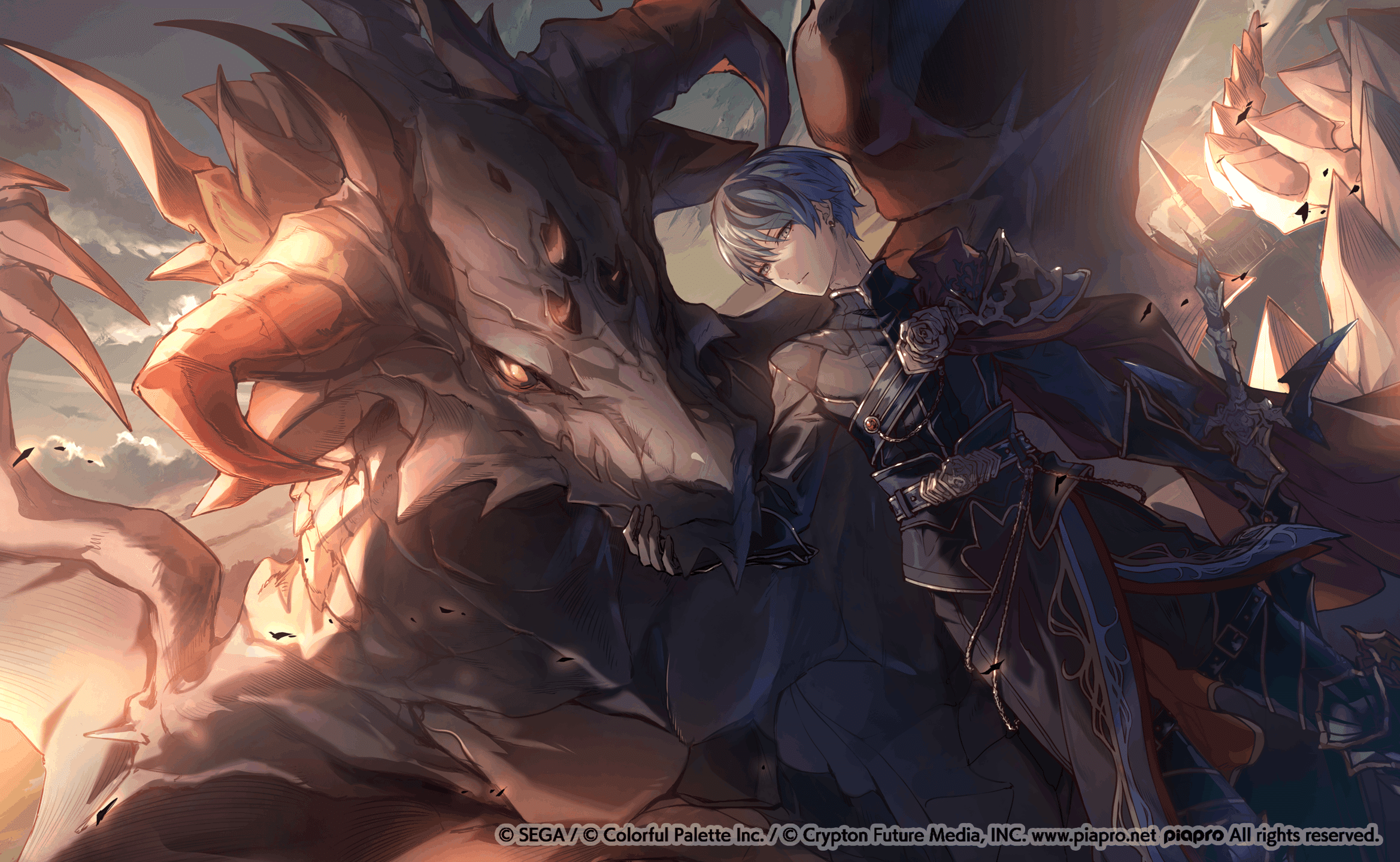 在去年的白色情人節活動中,畫了「白騎士」形象概念的插圖組合,所以這次決定使用與之相對的「黑騎士」的形象概念。另外,這次登場的服裝是充分表達了冬彌、類、KAITO各自個性的服裝,因此插圖也是選擇搭配服裝風格的場景進行繪製的。