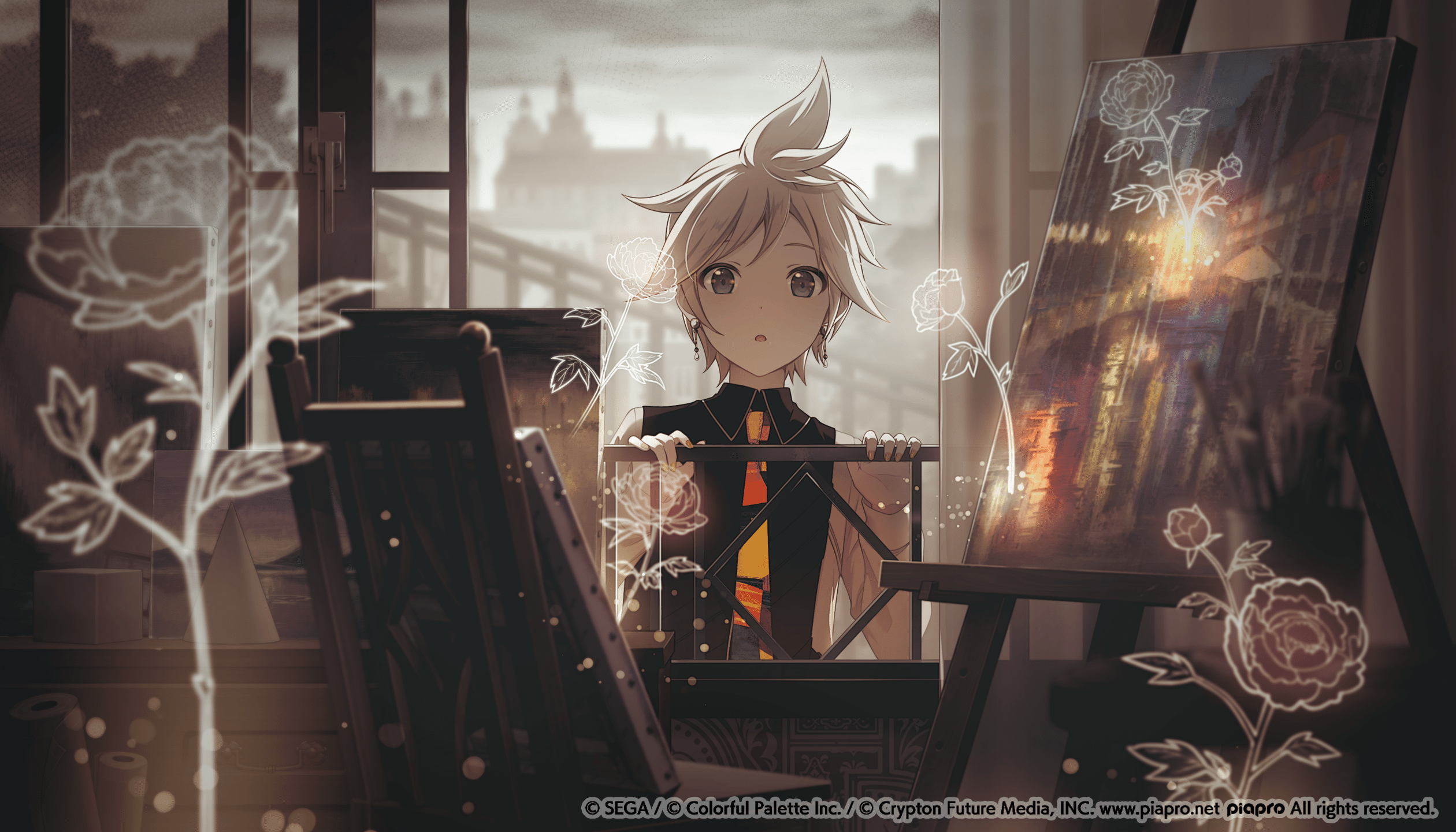 搭配概念主題,整體色調偏向寧靜安穩的單色調。背景從具有濃厚藝術氣息發想,以西洋街景作為舞台描繪。